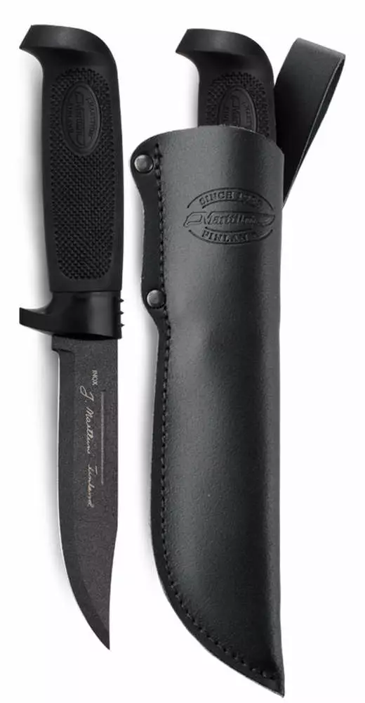 Musta puukko, myös tuppi on kokomusta.