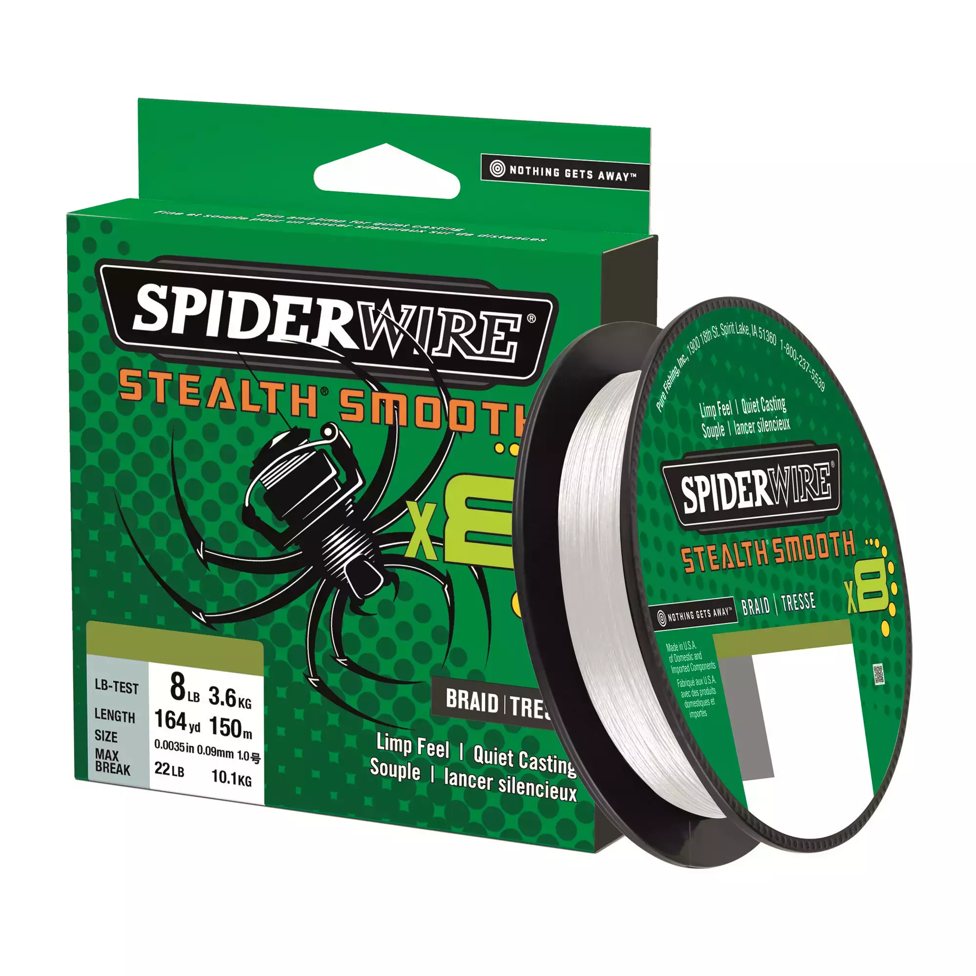 Spiderwire on nostanut siimanvalmistuksen taas uusiin ulottuvuuksiin! Spiderwire Smooth 8 palkittiin Efttex 2016 -messuilla parhaana uutena punottuna siimana. 8 tiheään kudotusta PE-kuidusta valmistetussa siimassa on kuituja yhdistävä ja suojaava mikrokuitupinnoite, joka tekee siimasta pyöreän ja sileän. Tuloksena on venymätön ja erittäin kestävä siima, jonka heitto-ominaisuudet ja hankauksenkestävyys ovat aivan omaa luokkaansa. Saatavana eri paksuuksia, erittäin ohuista 0,06-millisistä 0,40 mm:n siimoihin, jotka kestävät todella suurten kalanvonkaleiden painoa.