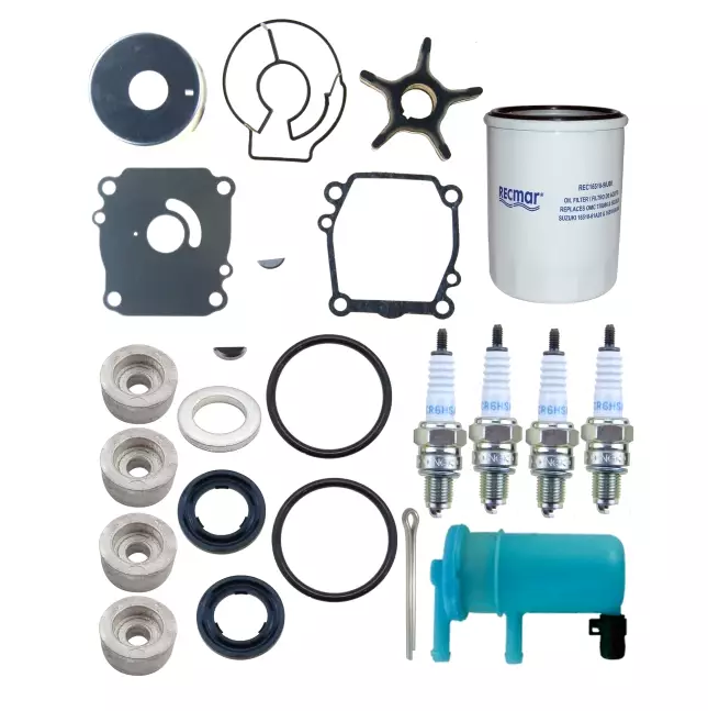 Tämä kattava huoltosarja sisältää kaikki tarvittavat osat Suzuki DF140-perämoottorin suositeltuun huoltoon. Sarja varmistaa moottorin optimaalisen toiminnan, polttoainetehokkuuden ja pitkän käyttöiän.