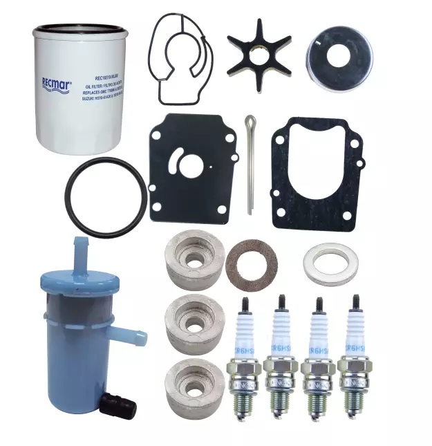 Tämä huoltosarja on täydellinen ratkaisu Suzuki DF70A–DF90A 2009–moottoreiden kausihuoltoon.