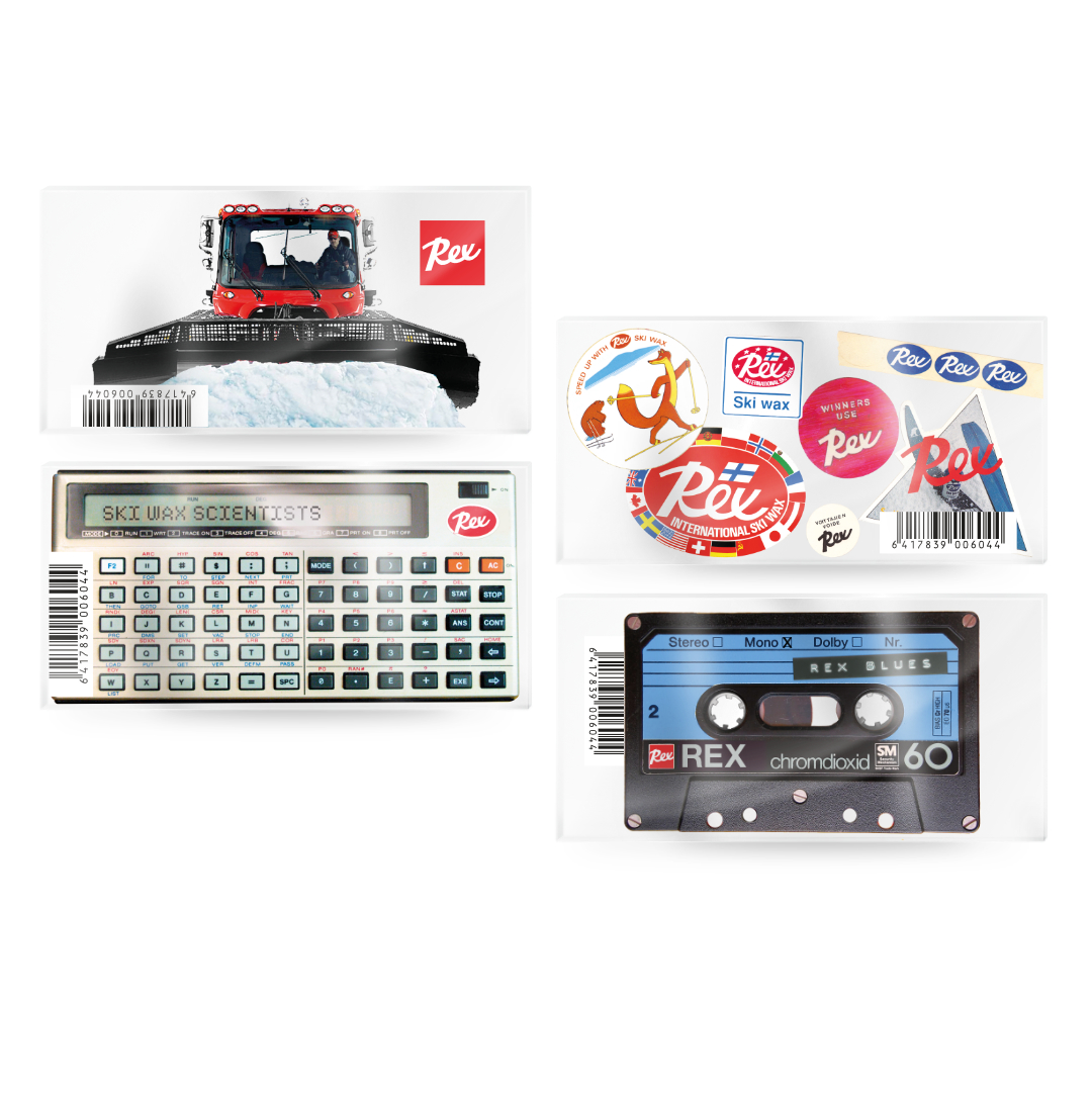 Jokaisen hiihtäjän perustarvike luistovoiteen siklaamiseen. Eri kuva-aiheita.