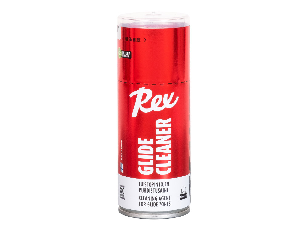 Suosittu 2-toiminen luistopintojen puhdistus/luistoneste. Puhdistaa luistopinnat tehokkaasti kuivattamatta pohjaa. Muodostaa erittäin kovan ja ohuen likaa hylkivän luistovoidekerroksen. Aloita aina uusi voitelu puhdistamalla luistopinnat ensin Rex Glide Cleanerilla, jolloin tulevien luistovoiteiden kiinnittyminen ja kulutuskestävyys paranevat merkittävästi. Toimii luistovoiteena sellaisenaan etenkin likaisissa tykkilumi- ja hiihtoputkikeleissä. Erinomainen alusvoiteena nestemäisille sekä kiinteille luistovahoille lisäten kulutuskestävyyttä ja luisto-ominaisuuksia. Kuivumisaika 2-3min, jonka jälkeen harjataan nylonharjalla.