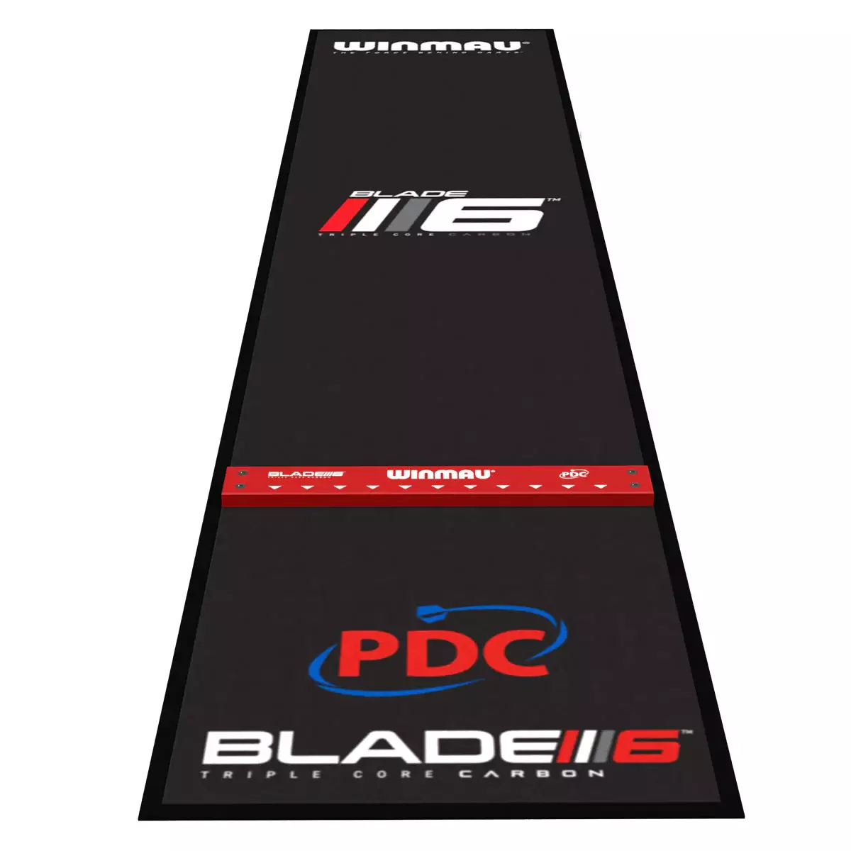 Pro Zone Precision Blade 6 -täyspituinen pehmeäpintainen dartsmatto, jossa on integroitu korotettu heittolinja (oche), tarjoaa täydellisen suojan lattialle.