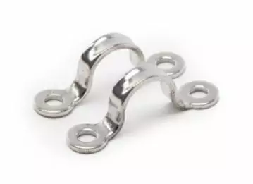 Lujatekoinen haponkestävästä teräksestä valmistettu kiinnitys / ripustuslenkki. Prässätty ohueksi. Millikoko vastaa kiinnitysreikien etäisyyttä toisistaan.